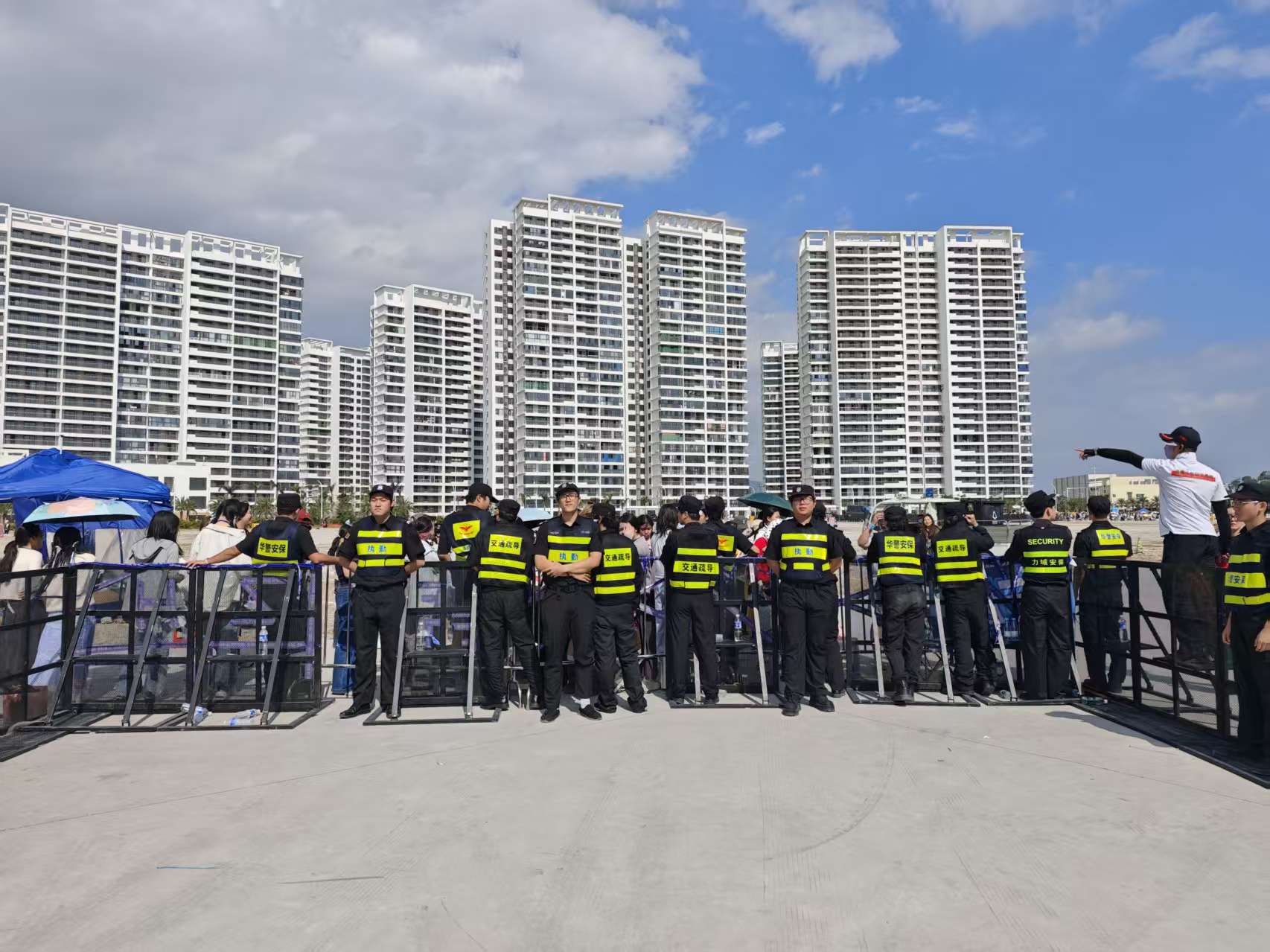 联合勘测与方案共创:两家团队骨干在活动前两周启动联合现场勘测,华警安保的交通指挥组与力域安保的场地安全专员共同评估白鹭体育场周边道路和内部设施。华警安保联合三亚交管部门,优化交通流线,增设临时停车区,安排队员守在各出入口引导观众绿色出行;力域安保则聚焦场内,对舞台设施、疏散通道进行全面排查,组织专业巡察小队实时监测人流动态,识别潜在风险点。这种“外围+内场”的协同模式,为活动奠定了坚实基础。同时优化了观众入场路线,减少拥堵点。针对离场高峰,设计了分时段疏散方案。